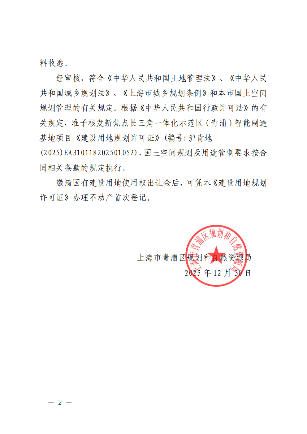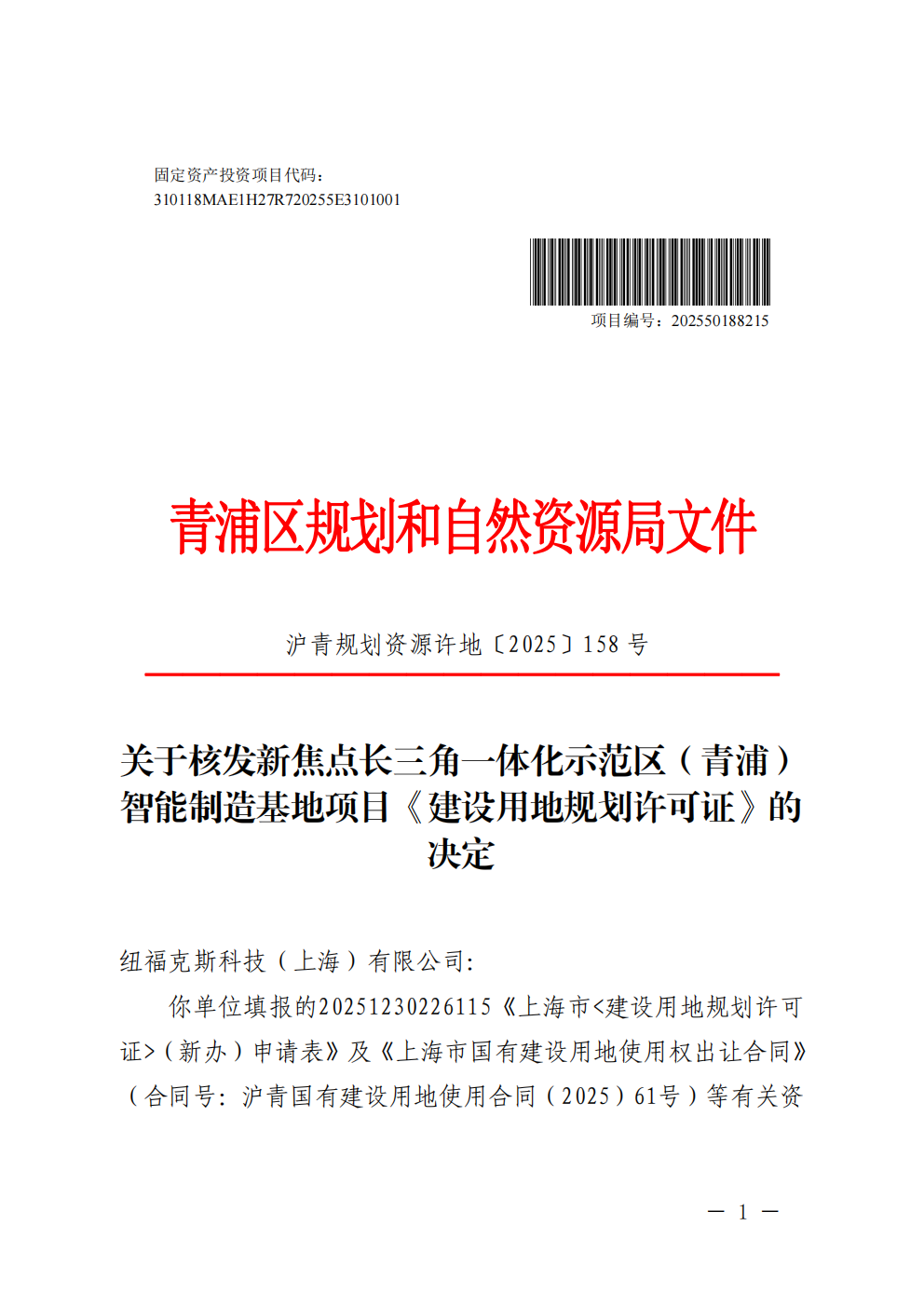 沪青地(2025)EA310118202501052建设用地规划许可公告(纽福克斯科技(上海)有限公司)