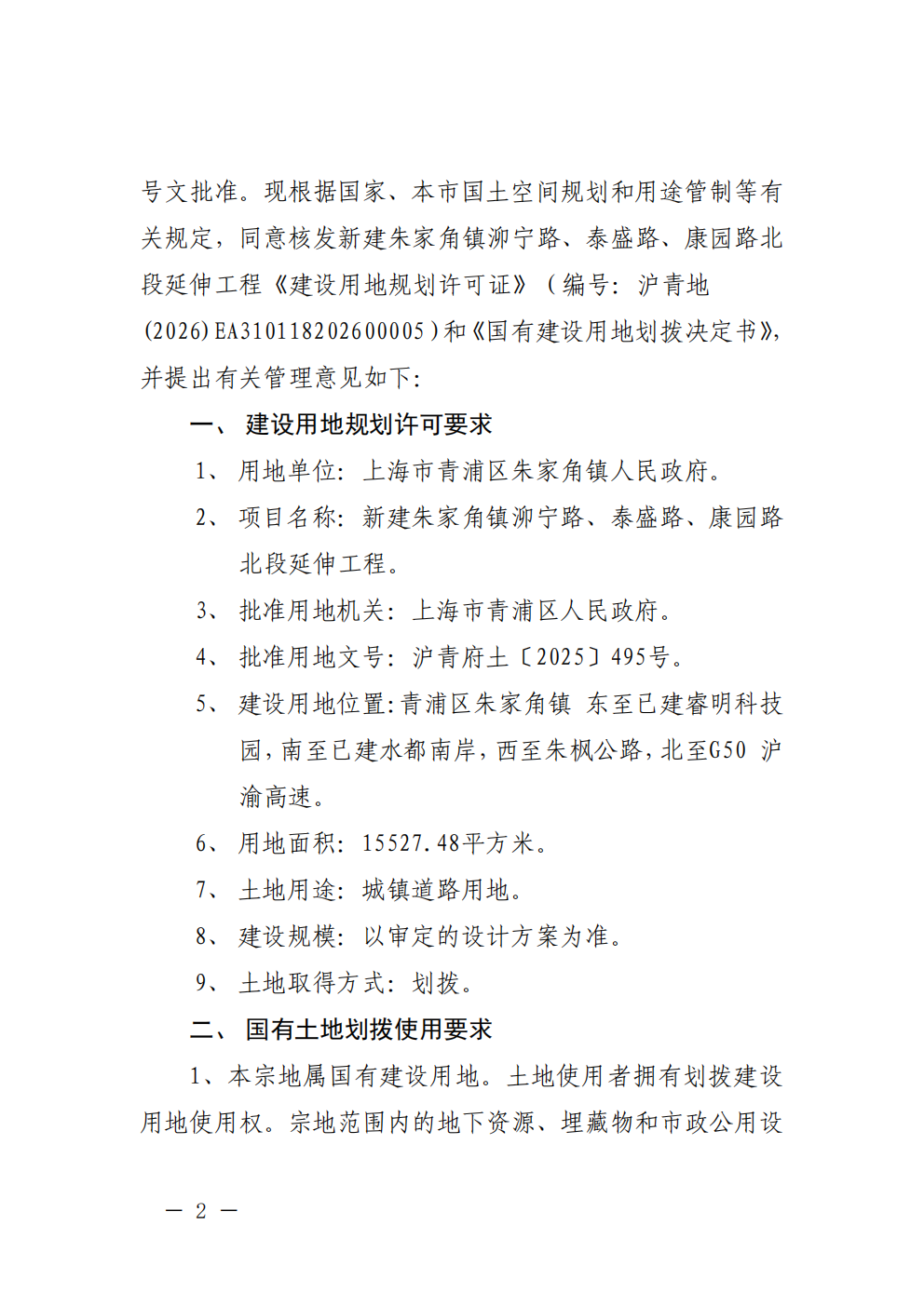 沪青地(2026)EA310118202600005建设用地规划许可公告(上海市青浦区朱家角镇人民政府)