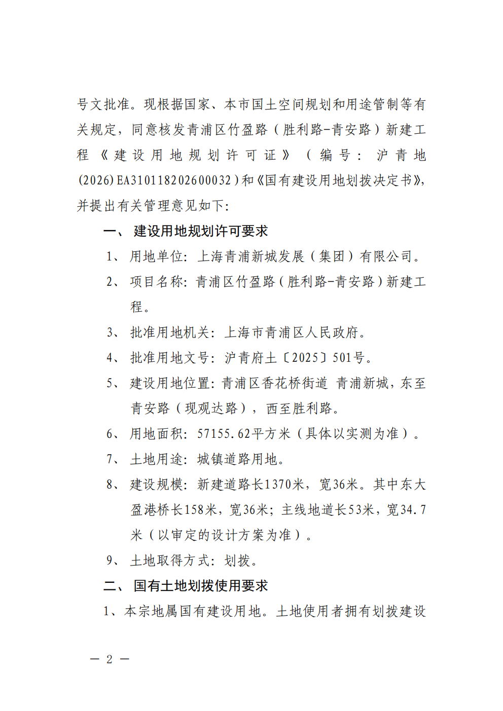 沪青地(2026)EA310118202600032建设用地规划许可公告(上海青浦新城发展(集团)有限公司)