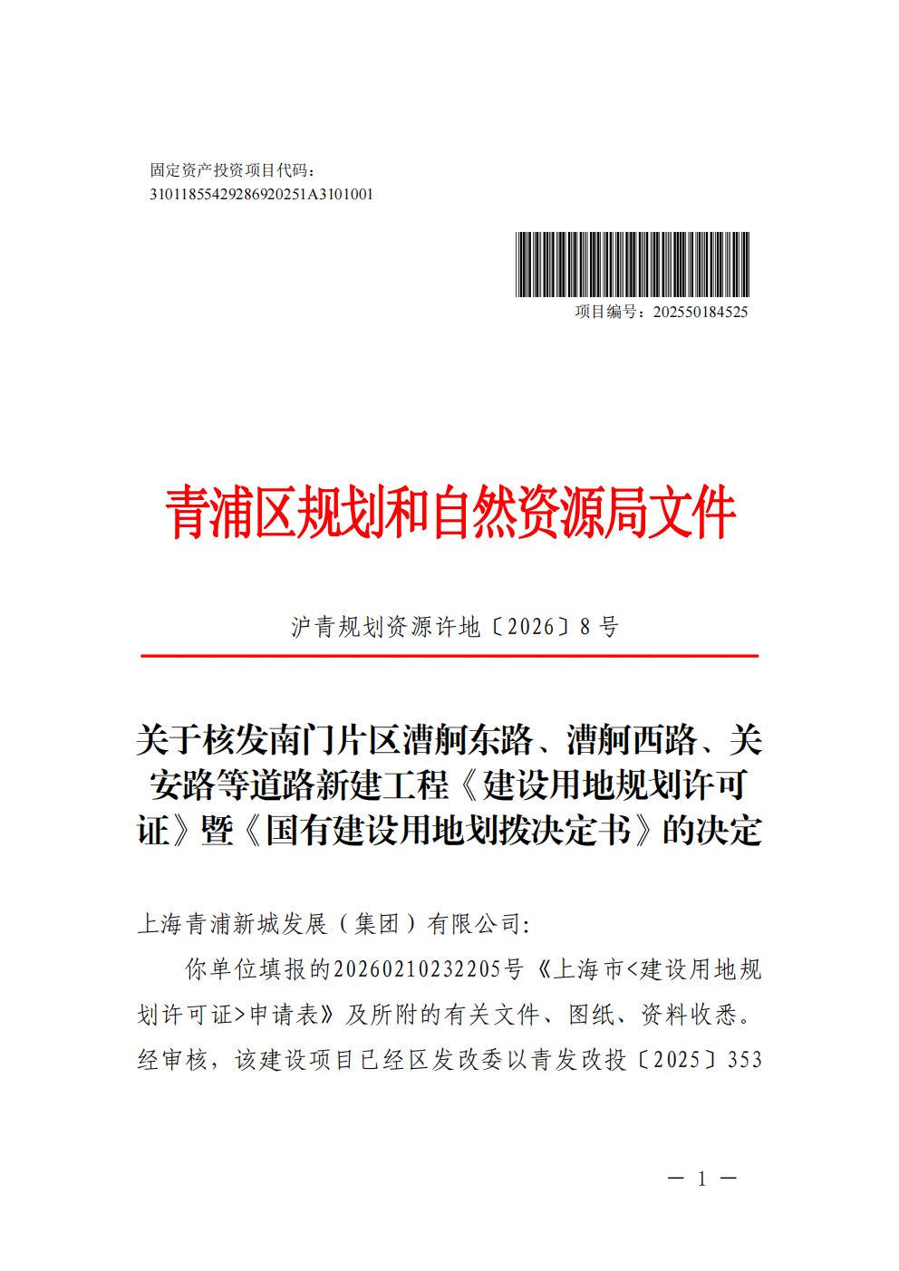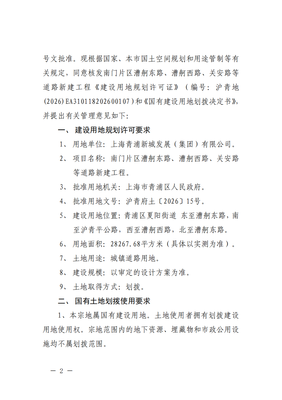 沪青地(2026)EA310118202600107建设用地规划许可公告(上海青浦新城发展(集团)有限公司)
