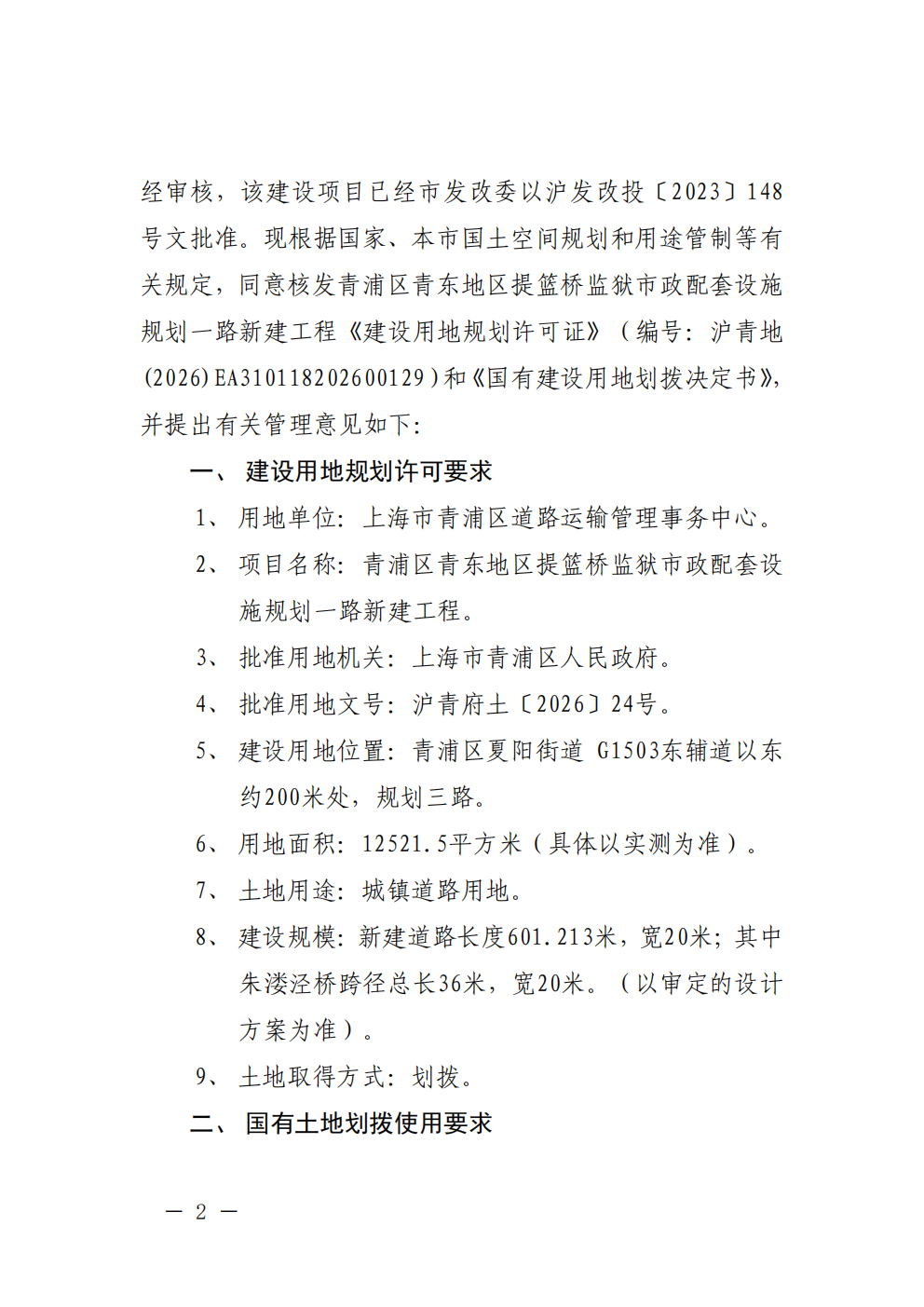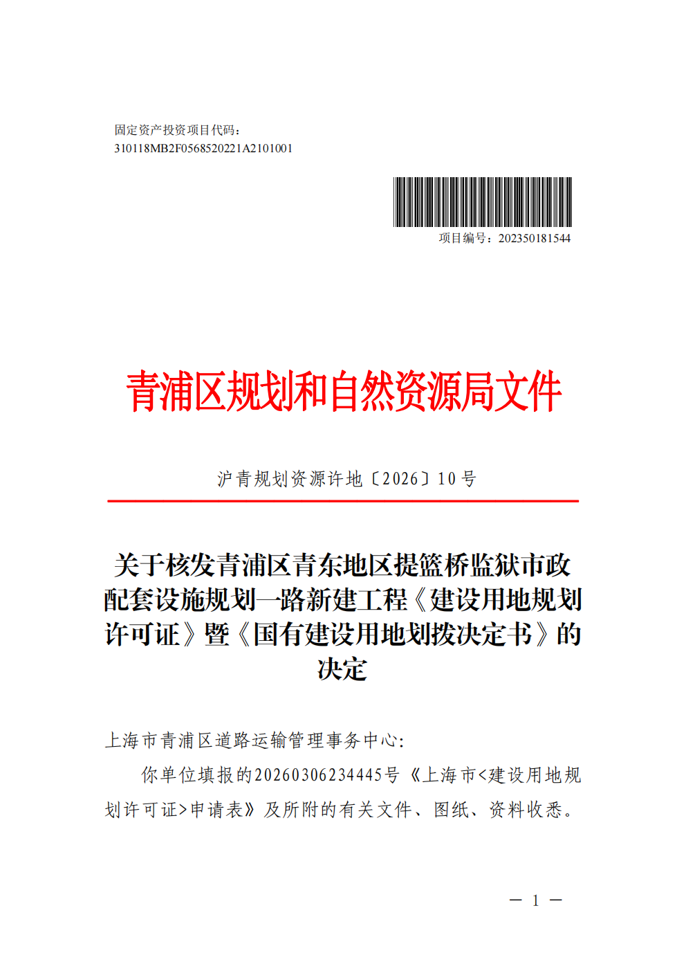 沪青地(2026)EA310118202600129建设用地规划许可公告(上海市青浦区道路运输管理事务中心)