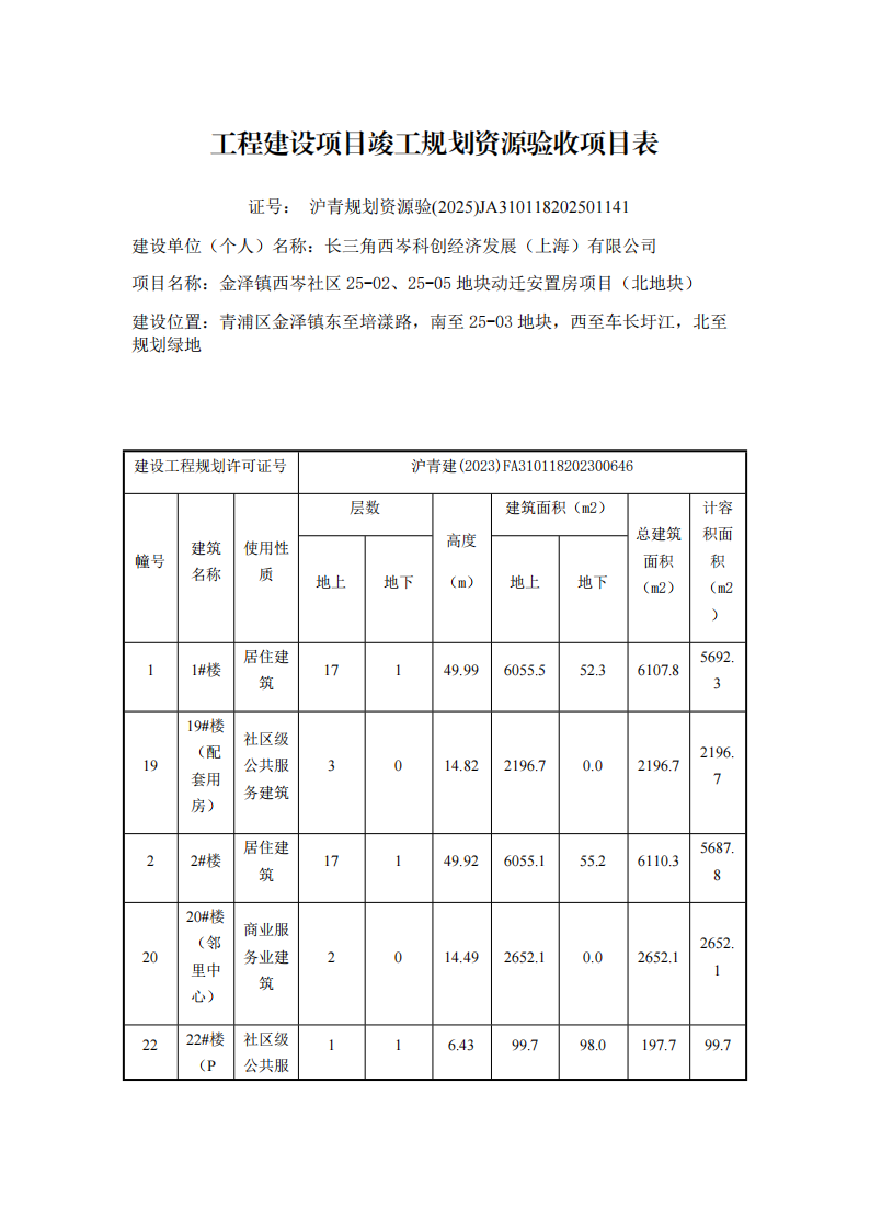 沪青规划资源验 (2025)JA310118202501141上海市工程建设项目竣工规划资源验收合格证(长三角西岑科创经济发展(上海)有限公司)