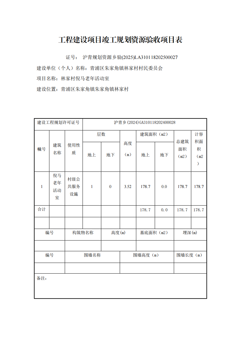 沪青规划资源乡验 (2025)LA310118202500027上海市工程建设项目竣工规划资源验收合格证(青浦区朱家角镇 朱家角镇林家村)