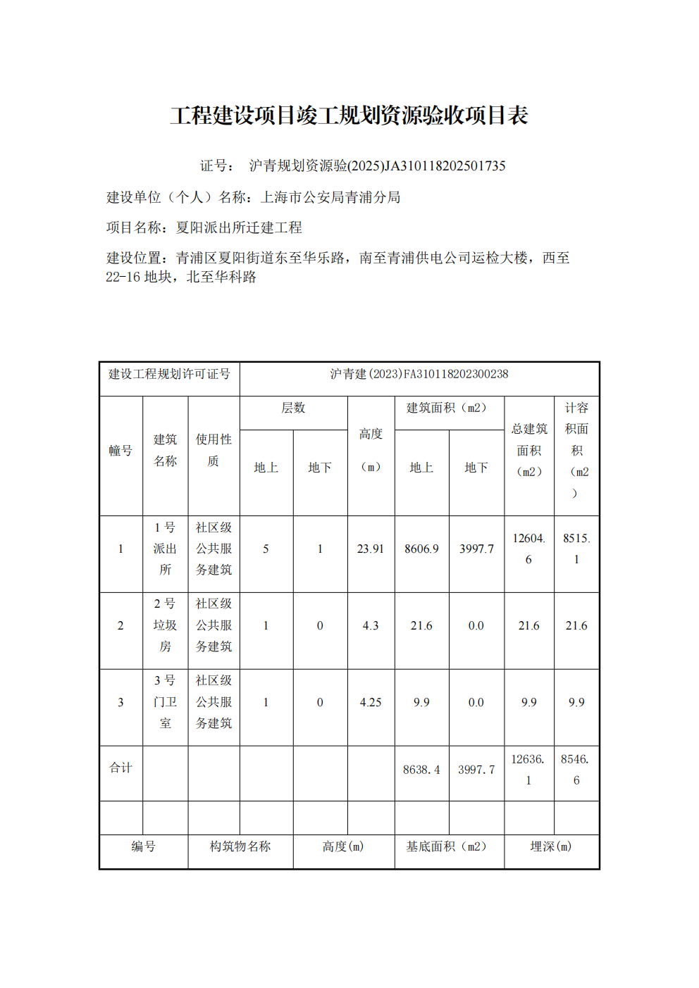 沪青规划资源验 (2025)JA310118202501735上海市工程建设项目竣工规划资源验收合格证(上海市公安局青浦分局)