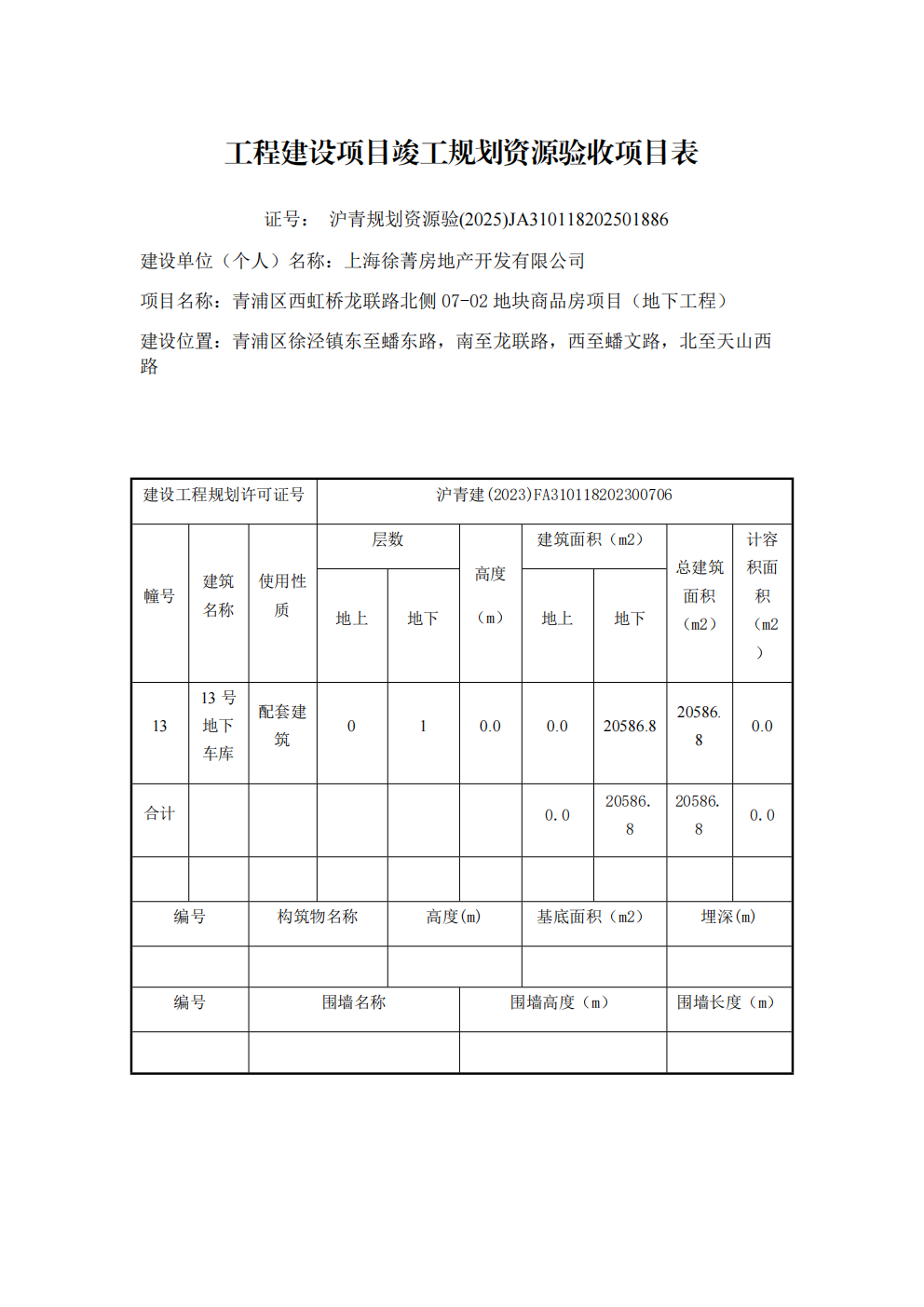 沪青规划资源验(2025)JA310118202501886上海市工程建设项目竣工规划资源验收合格证(上海徐菁房地产开发有限公司)
