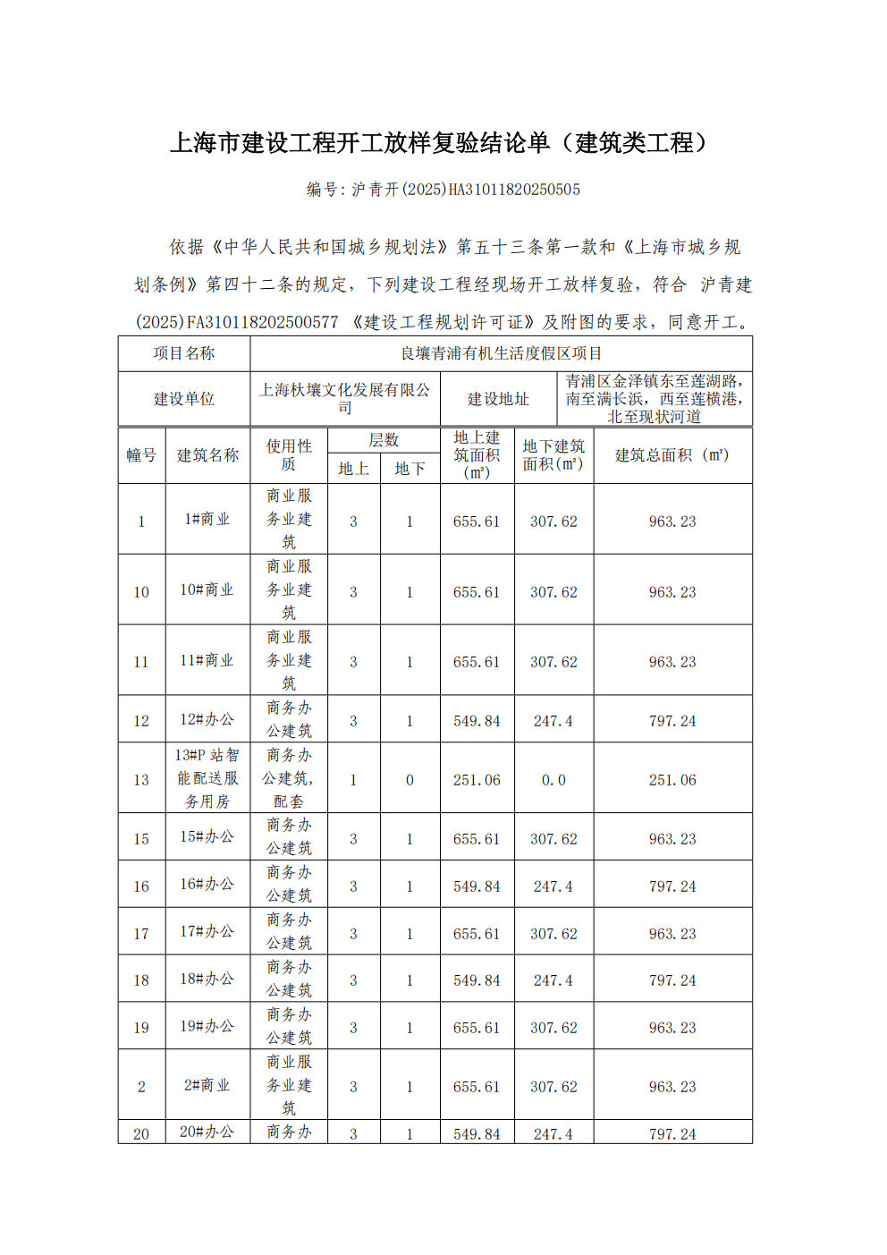 沪青开(2025)HA31011820250505上海市建设工程开工放样复验结论单(上海杕壤文化发展有限公司)