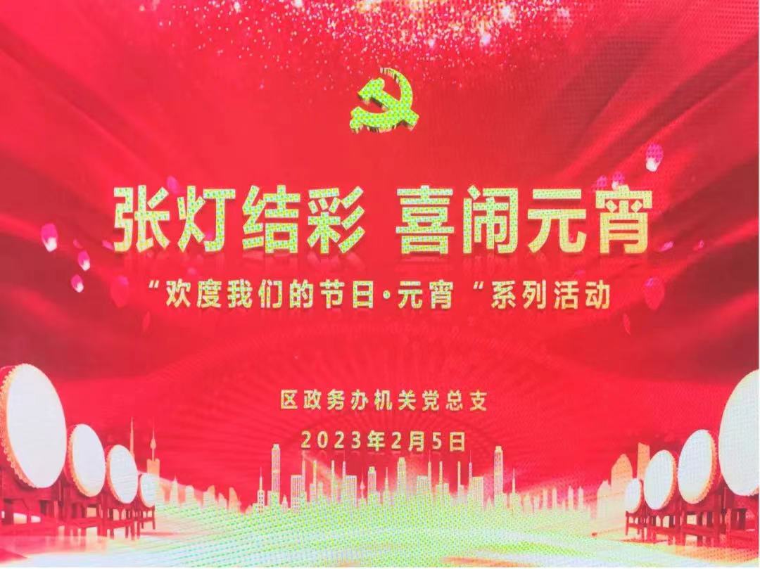 为弘扬中华优秀传统文化,丰富政务办广大干部职工文化生活,营造欢乐喜庆、文明祥和的元宵节氛围,今天(2月5日)下午,区政务办机关党总支组织开展“我们的节日·元宵节”做灯笼 猜灯谜活动。