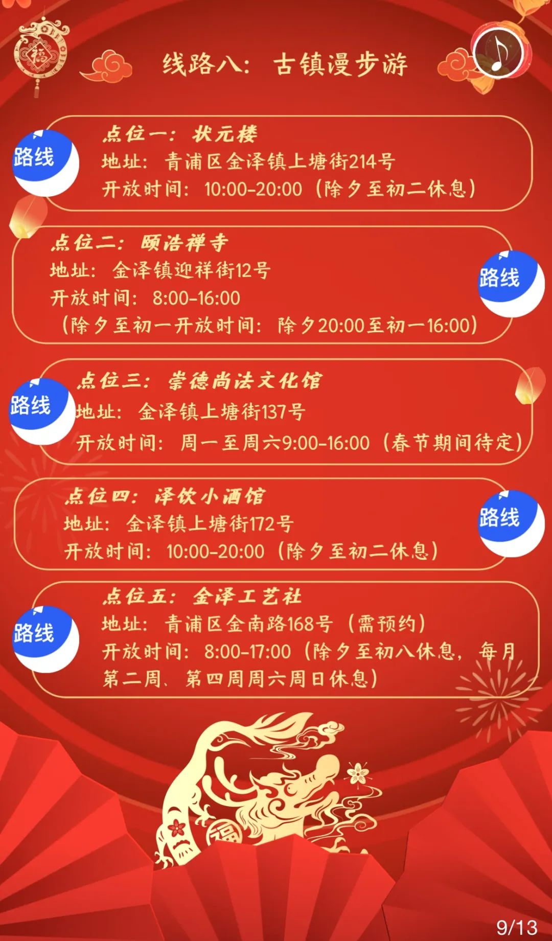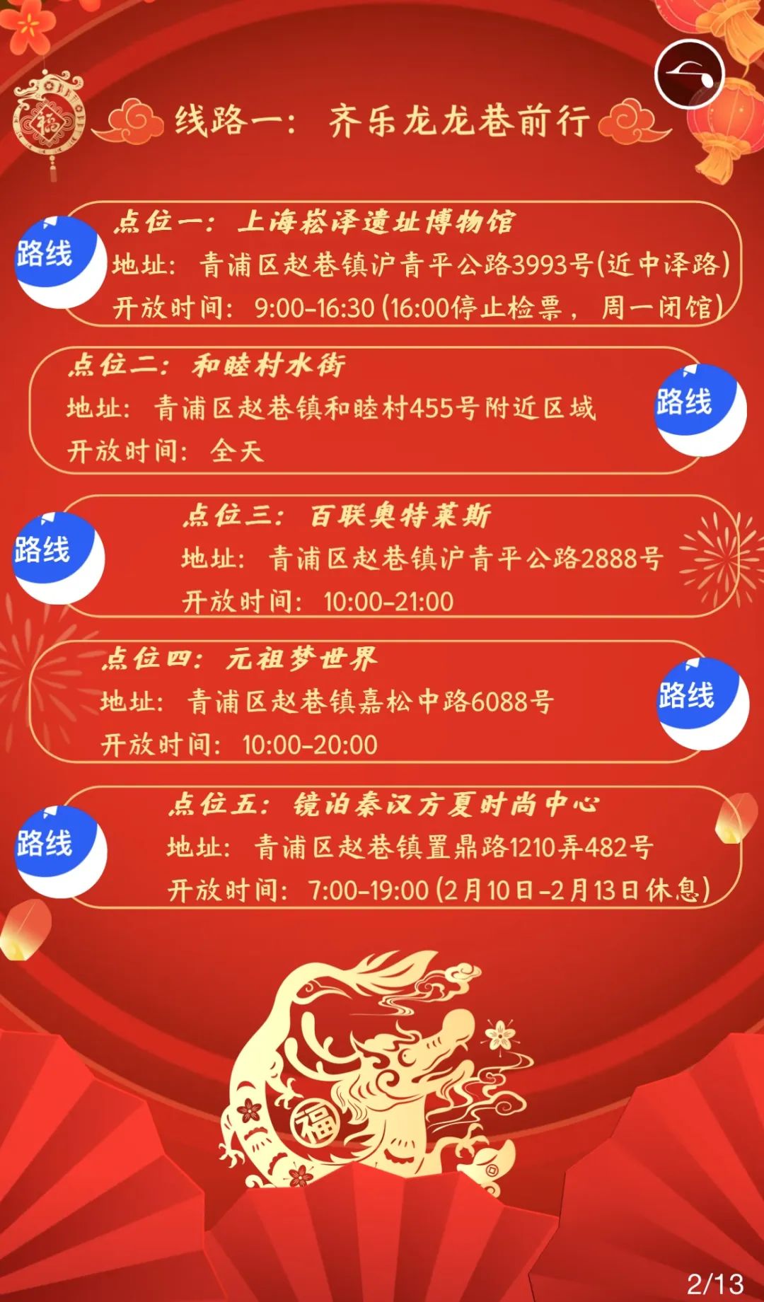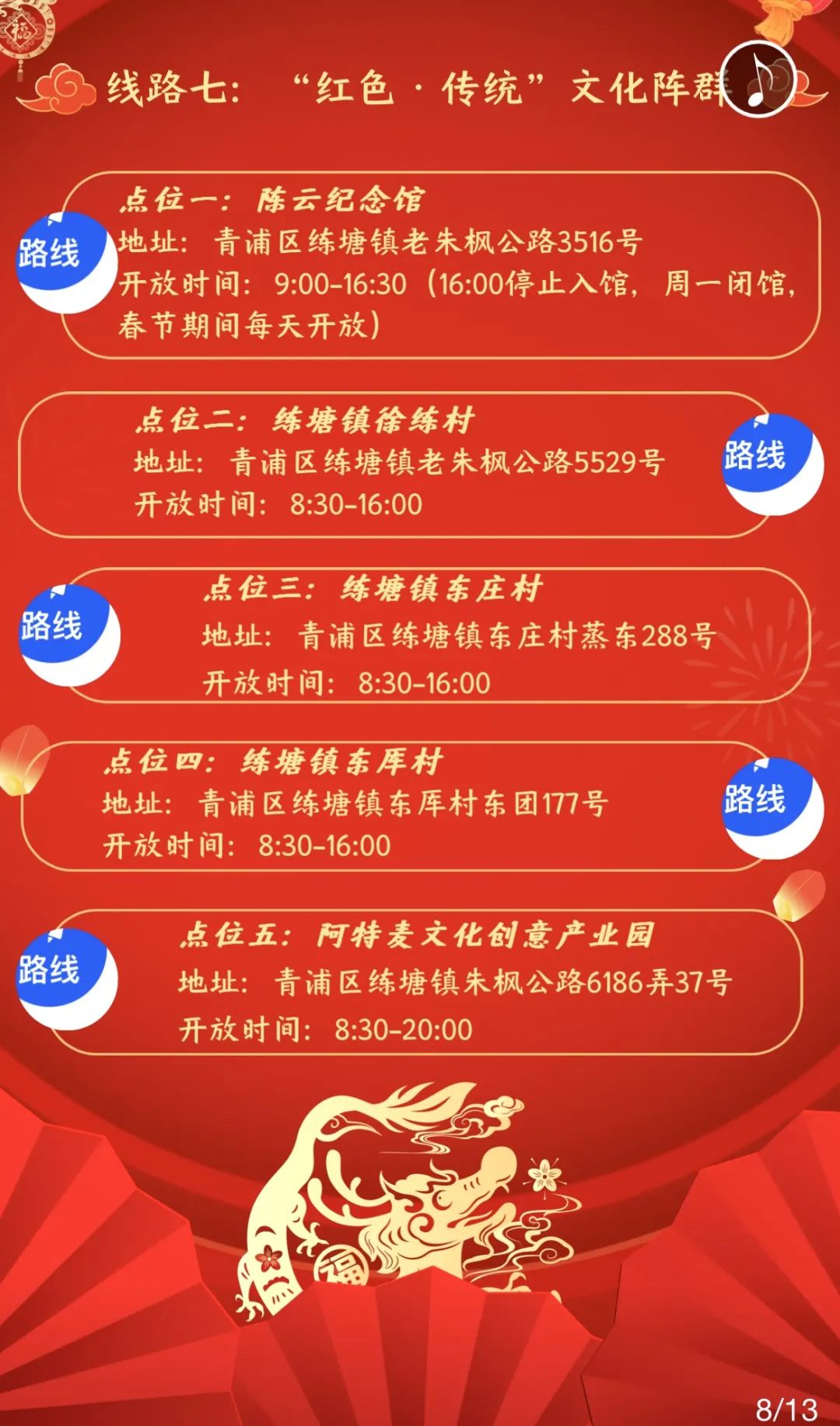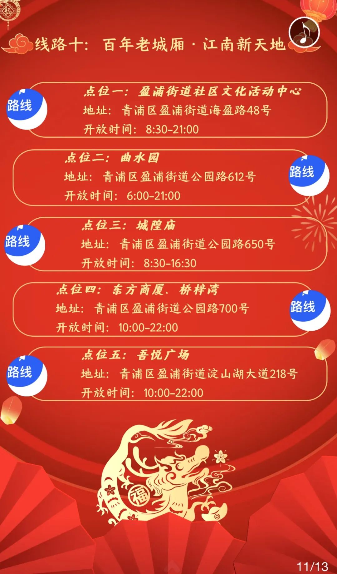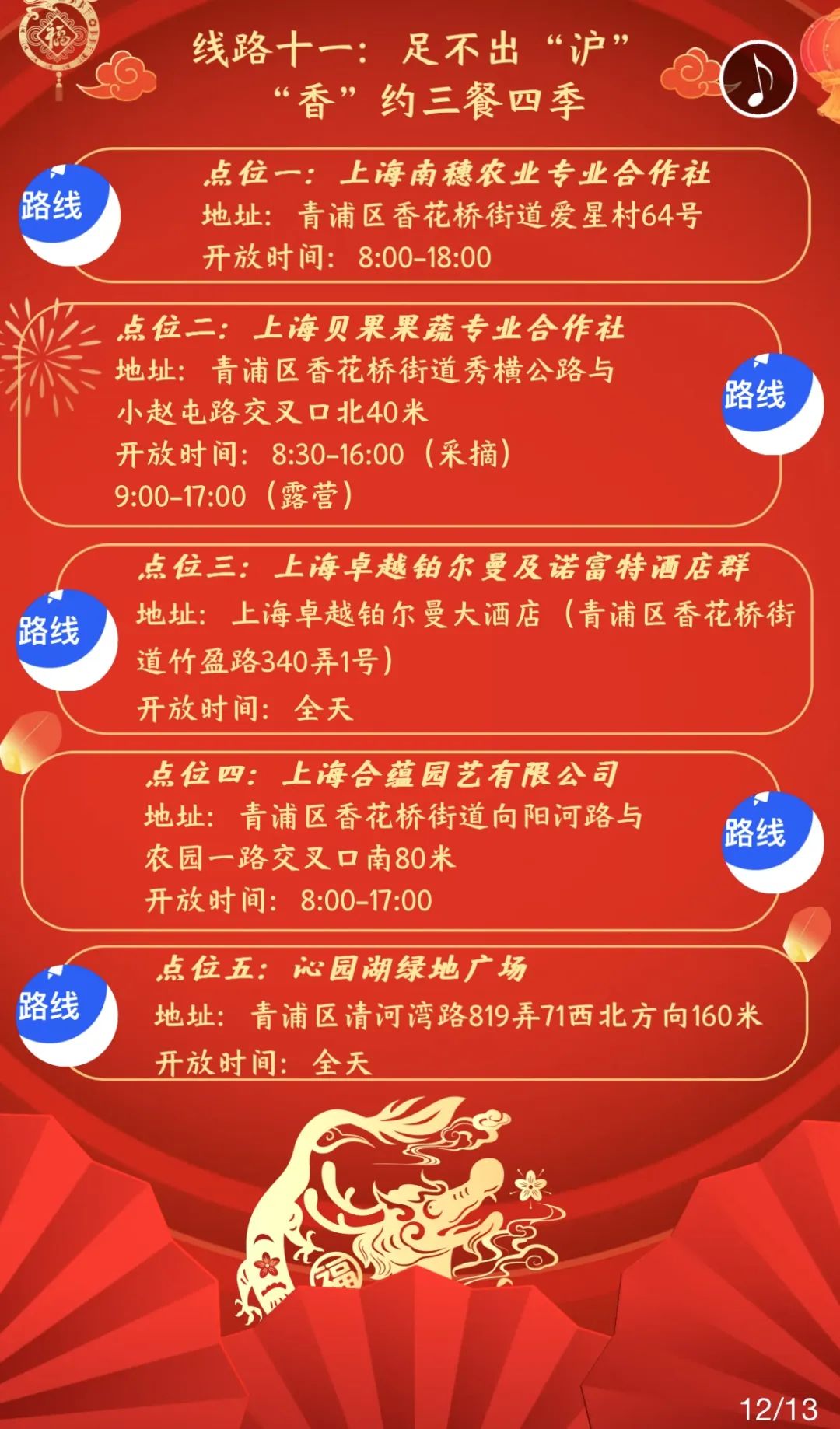 青浦区春节、元宵修身打卡线路