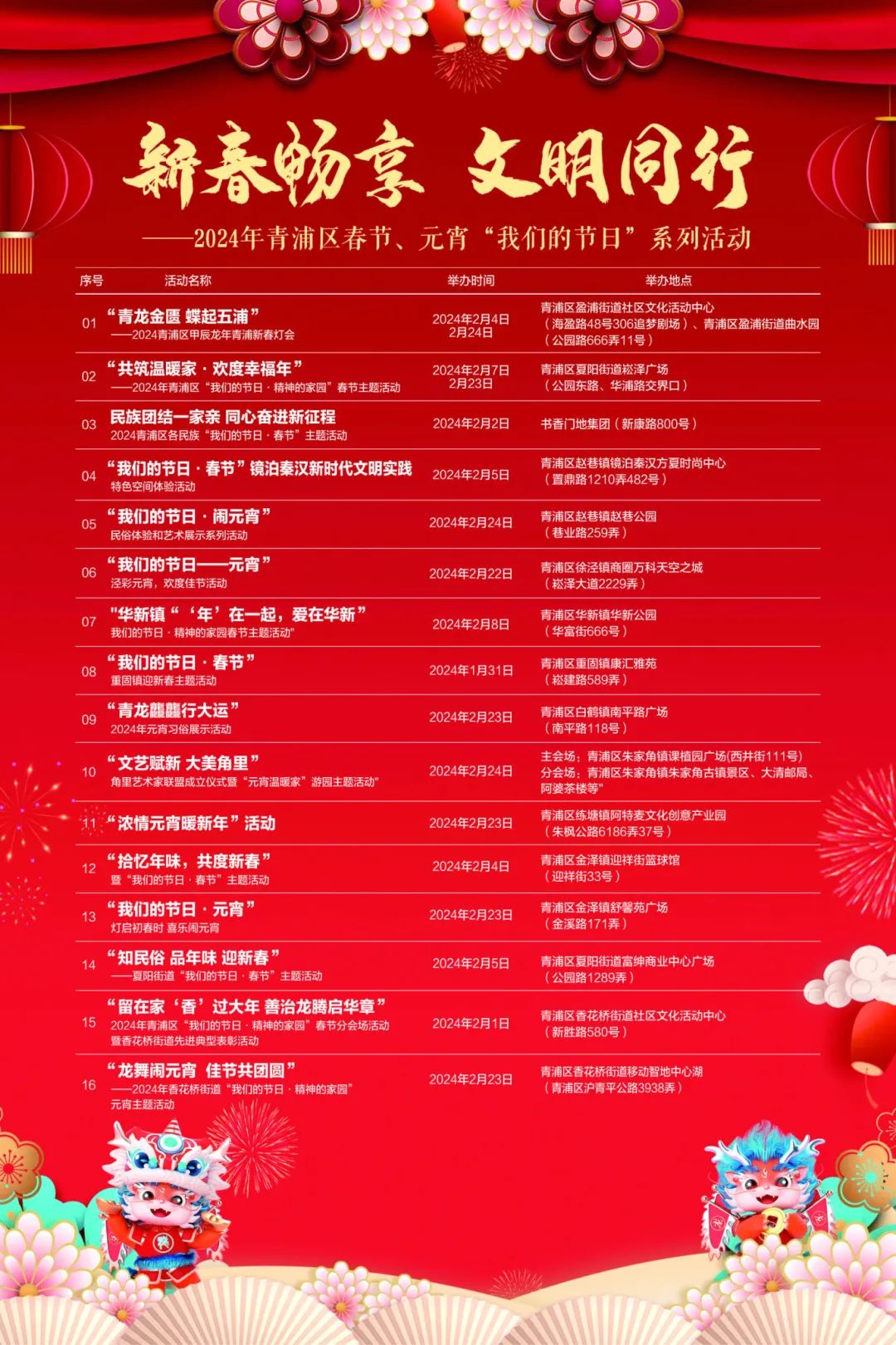 新春畅享 文明同行——2024年青浦区春节、元宵“我们的节日”系列活动