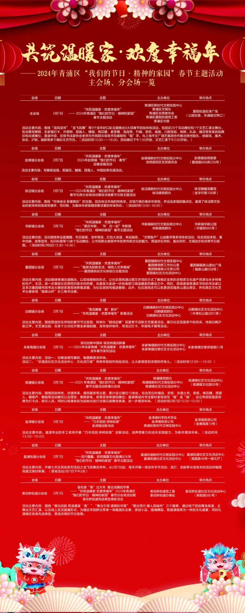 2024年青浦区春节、元宵“我们的节日”系列活动来啦,一起来看看吧~