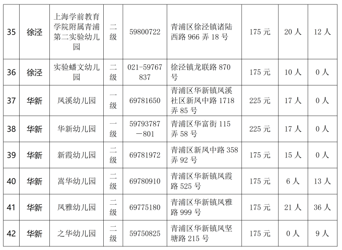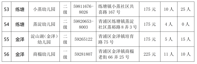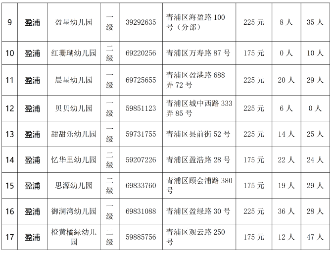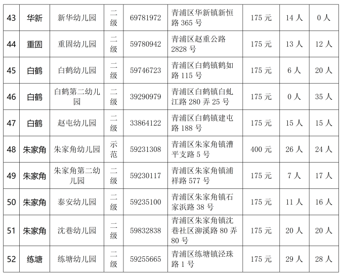 2024青浦区公办幼儿园转园插班计划一览表