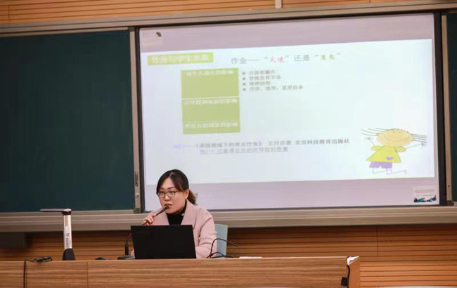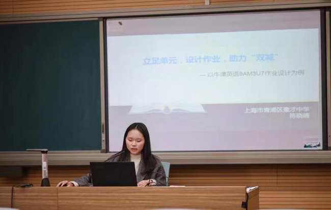 本次论坛由三位教师精心准备并作交流。来自青浦一中的沈瑜老师以《基于单元,提升作业设计能力》这一主题进行交流,基于9AU3单元按照《初中英语单元教学设计指南》中作业设计的路径开展单元作业设计,沈老师的交流呈现了青浦一中英语团队的认真与智慧;来自青教院附中的易冠华老师以《初中英语长作业设计与实践》为主题进行交流,呈现了青教院附中的教师团队对于学科长作业的设计与思考,体现了学校在项目化学习上的探索与实践;来自豫才中学的陈晓晴老师以《立足单元,设计作业,助力“双减”》为主题进行交流,在设计作业时,教师需关注课型,突出重点,重视层次来进行。通过三位老师从不同的切入点进行的交流,使得在座的教师们更清晰明了地理解了单元作业的设计与意义。