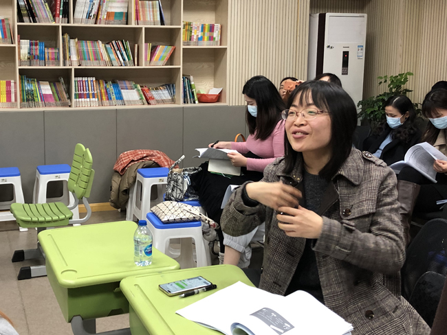 在研讨与交流板块,首先,青教院附小英语教导韩萍萍、学科组长周燏玫老师以“基于单元目标的分课时作业设计与实施”为主题阐述了青教院附小英语组在“双减”背景下进行的课时作业设计与实施的校本研修活动。然后,教研员张敏稚老师抛砖引玉,针对观察视角“第二、三课时教学过程设计了哪些活动类型?学习效果如何?”和大家进行探讨。通过张老师的分析,使我们对于三种学习活动类别,学习理解类活动、应用实践类活动、迁移创新类活动有了进一步的了解和认识。随后,朱家角小学董陈老师和吴雪莲老师、实验小学的赵静华老师、嵩华小学的沈俏莲老师和青教院附小的韩萍萍老师,纷纷围绕本次活动的主题畅谈了对两节课的感受,分别从教学活动和作业设计等方面对两位老师及其团队进行充分的肯定,同时也提出了一些宝贵的建议。最后,教研员周根妹老师进行了总结。周老师为我们解析了活动伊始她所提出的三个观察视角,从教学内容,活动设计,到作业设计都做了详细到位的分析。周根妹老师提出,我们一定要做到:首先是解读教材,解析主题意义、整合相关资源、摸清学生基础、制定目标体系;其次要精设活动,分析语篇类型、创设生活语境、设计学习活动、学生实践参与;第三通过审视作业目标、分析内容核心来编写课时作业和反馈指导提升。周老师的分析深入浅出,对教师们在日常教学中如何设计教学活动和作业提供了有效的指导。