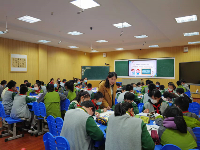 课堂教学后,与会教师就单元教学和议题式教学展开了研讨活动。毓秀学校沈悦越老师代表学校教研组作了主题发言,就本次活动的主题进行了解读,介绍了整个活动的设计思路,两位执教老师也分别进行了说课。与会教师结合两位老师的课堂,针对单元教学和议题式教学进行了研讨。