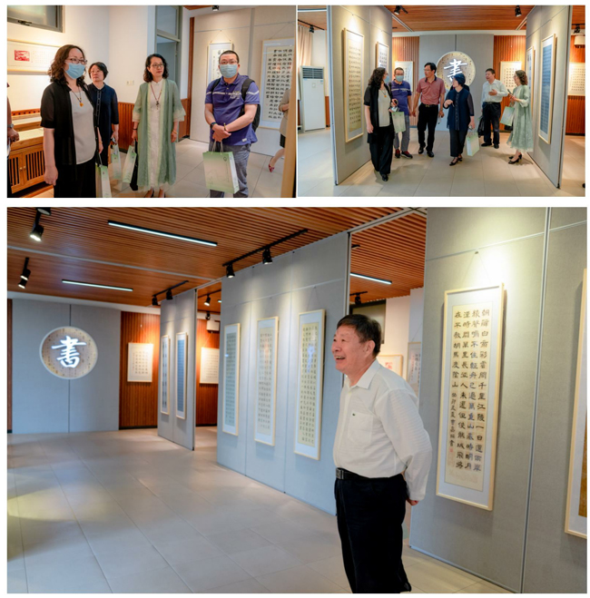 虽细雨蒙蒙,参与活动教师还是早早来到学校,签到领取材料后漫步在静谧的校园中,面对文化墙上的八位书法特长生个人作品展前不禁驻足片刻;当移步至学校“五常阁”展厅,欣赏 “艺彩纷呈 术写未来” 第八届校园艺术节学生书法作品展时更是啧啧称赞,浓浓书香校园为每一位来宾留下深刻的印象。