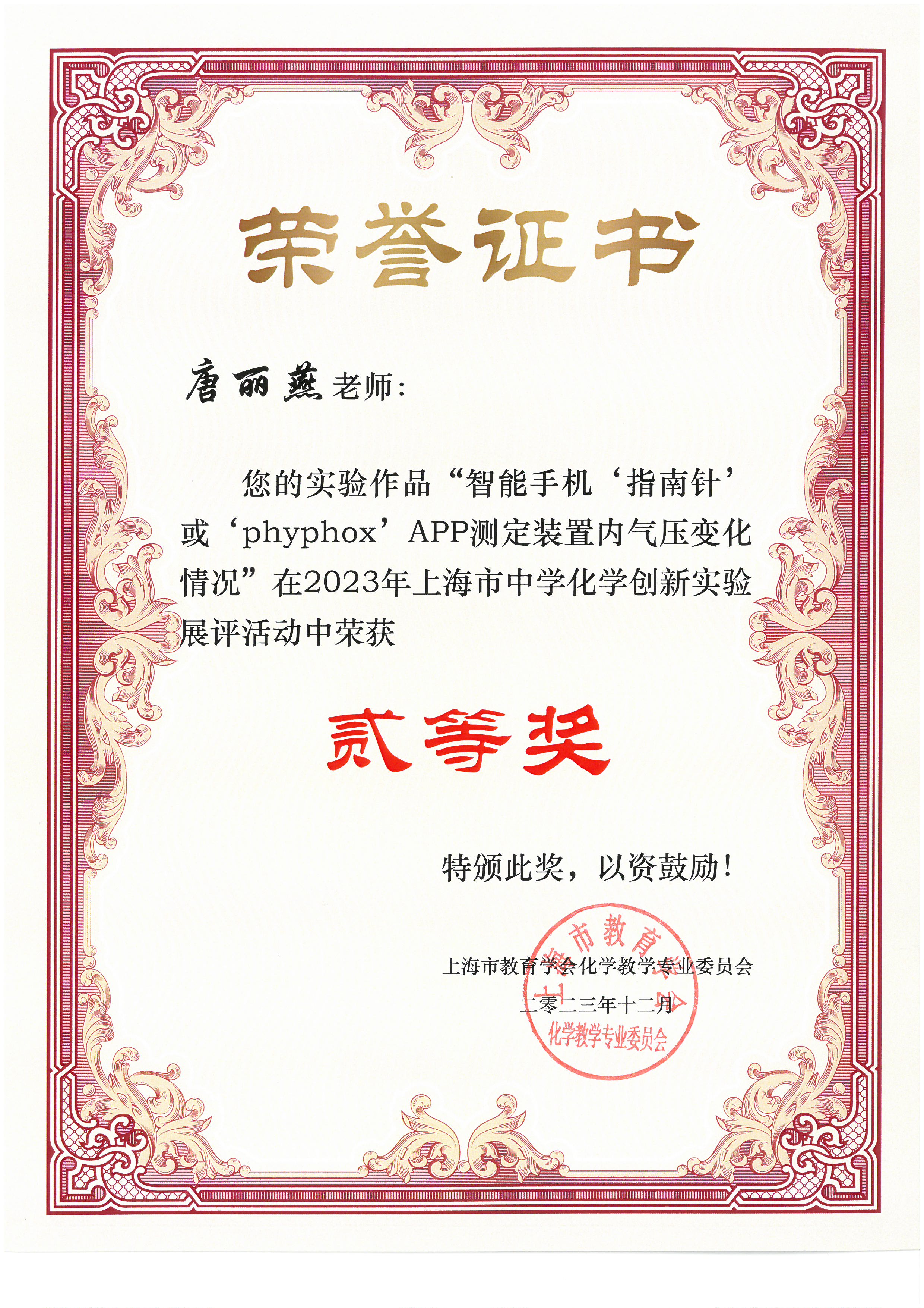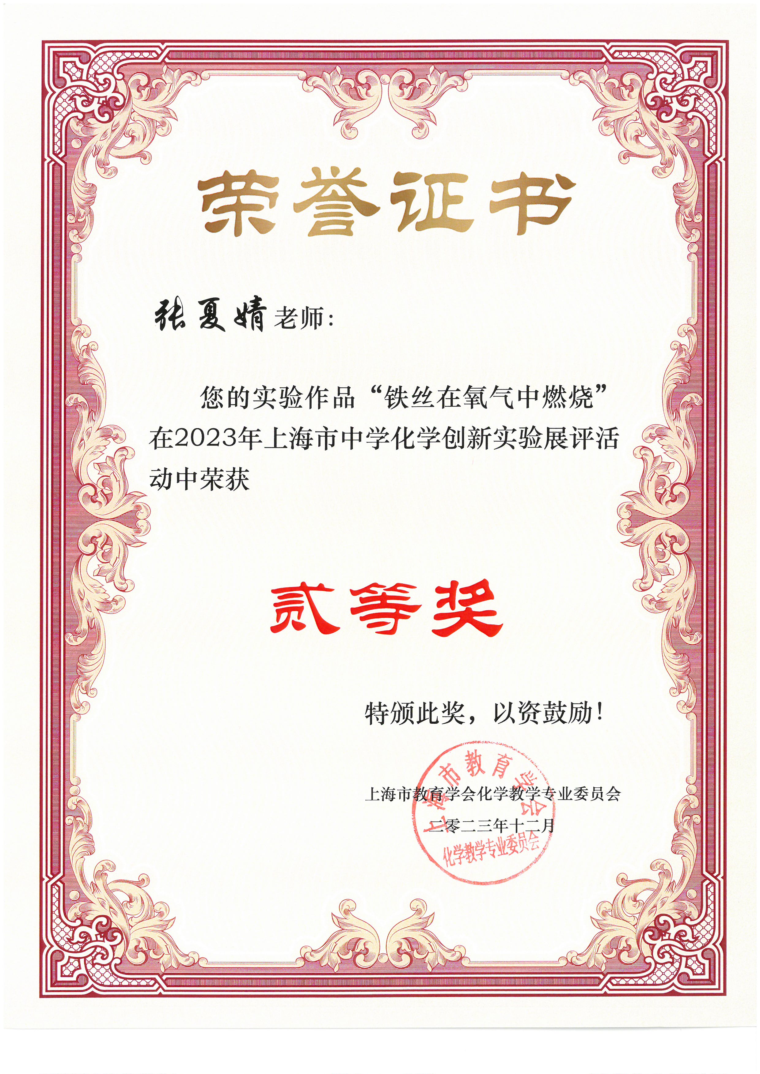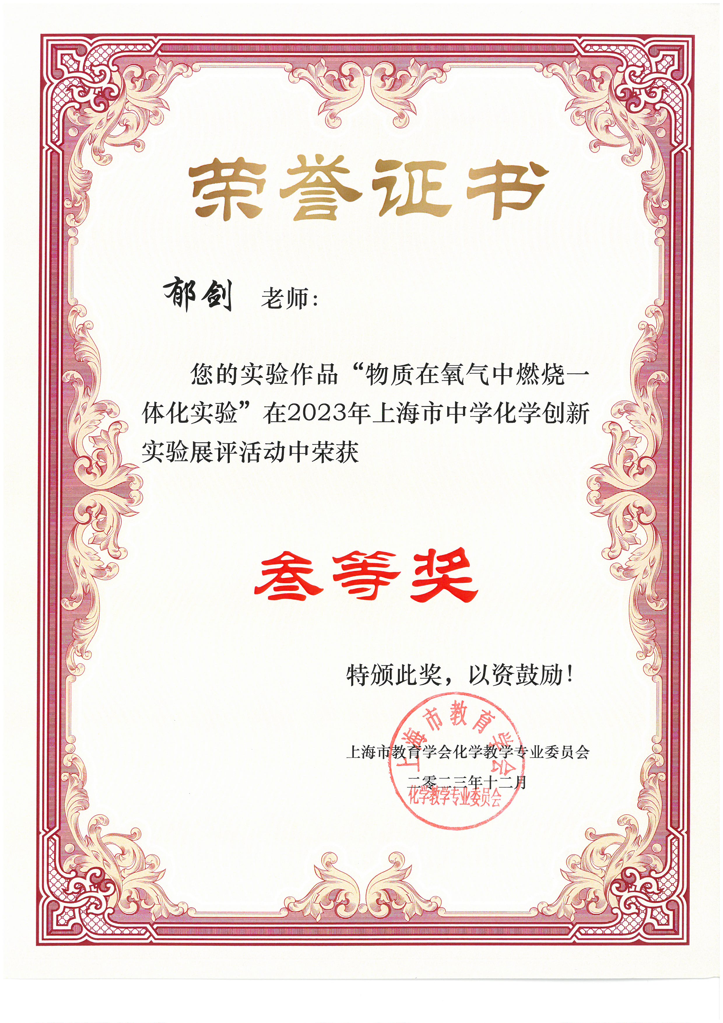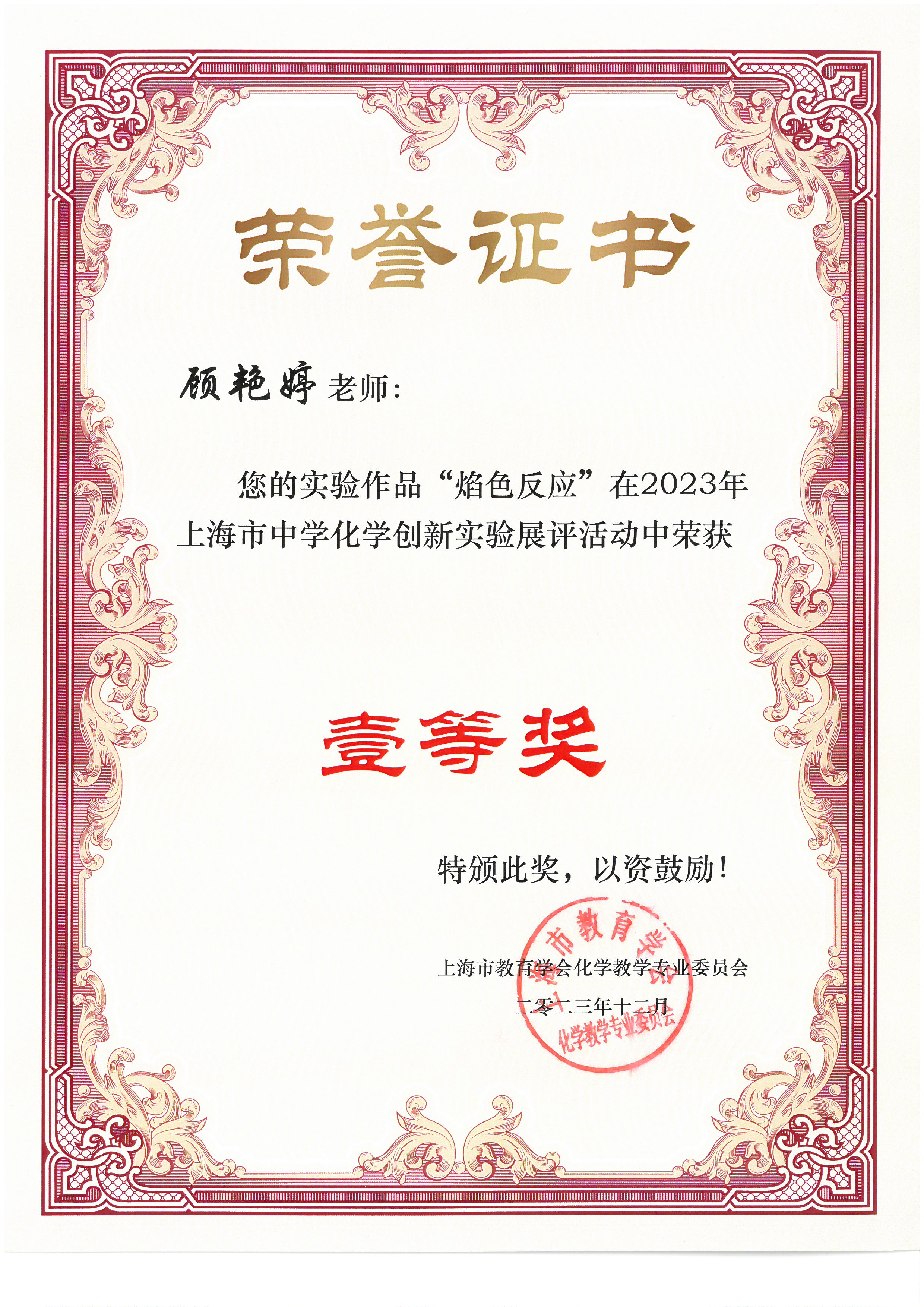 2023年12月,青浦区初中化学学科选送的作品参加上海市中学化学创新实验展评活动,荣获一等奖1项,二等奖2项,三等奖2项。