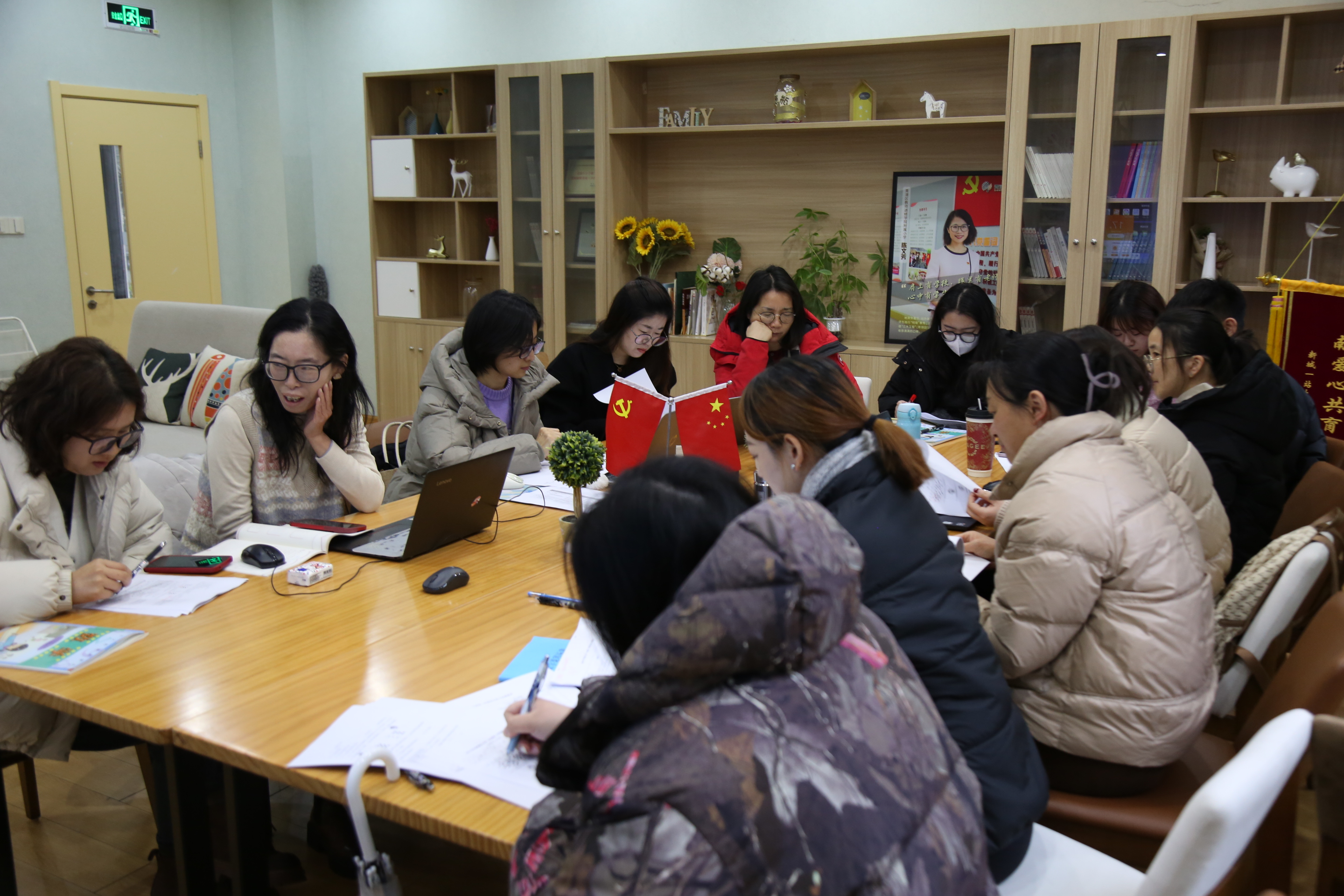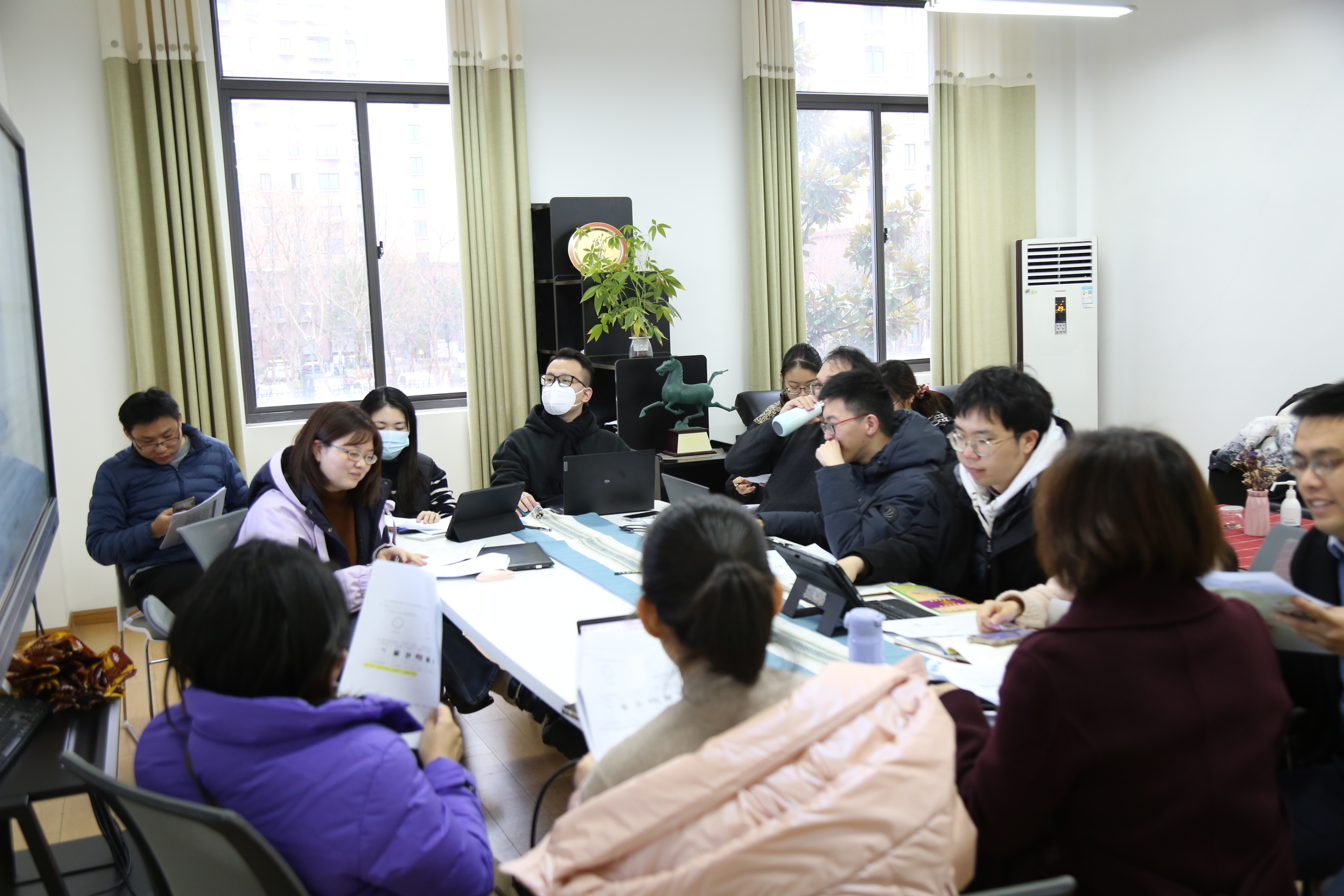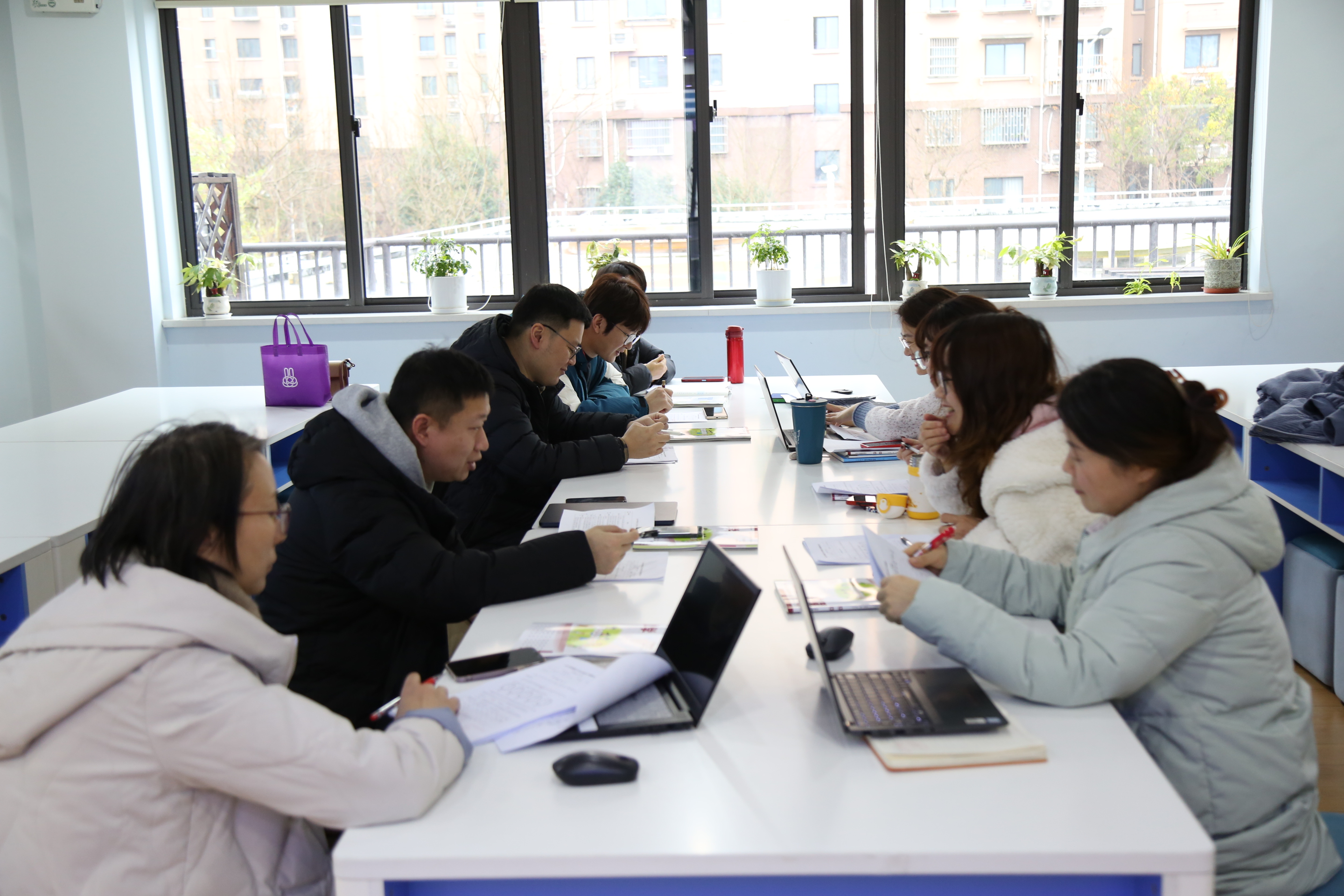 随后区各小学、九年一贯制学校数学分管,在学科中心组老师的组织下,对杨老师假期命题的试卷,从命题量表中的目标、能力维度、占比权重,及各习题的题干表述等方面开展分年级分小组进行研讨。青教院附小各年级的老师分别加入相应年级小组的讨论,一个半小时,各小组老师各抒己见,进行了热烈讨论。