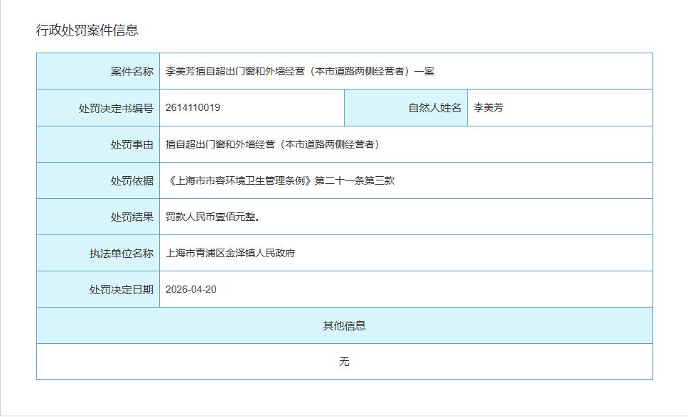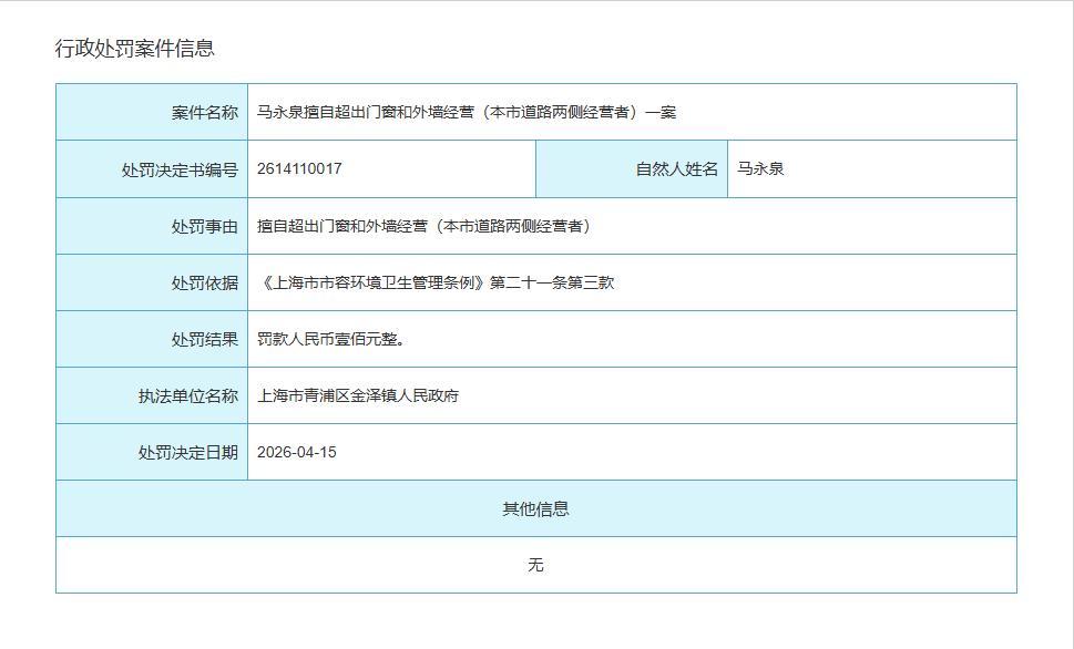 金泽镇行政处罚信息公开(截止2026年4月24日)