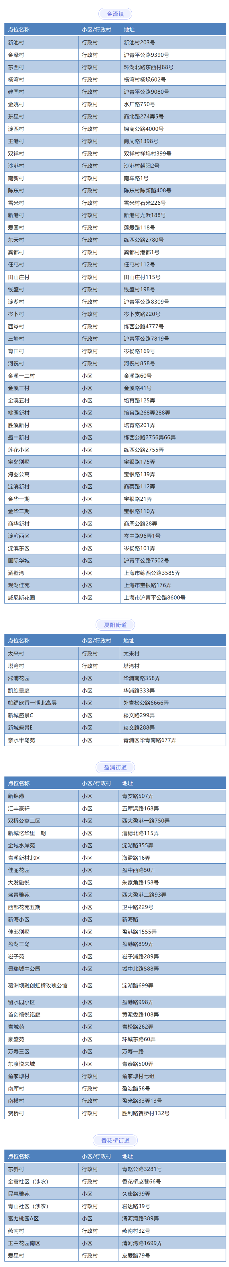 根据上海市新型冠状病毒肺炎疫情防控工作领导小组办公室《关于印发上海市“无疫小区”创建方案的通知》(沪肺炎防控办〔2022〕347号),青浦区深入开展“无疫小区”创建工作。第二批名单如下: