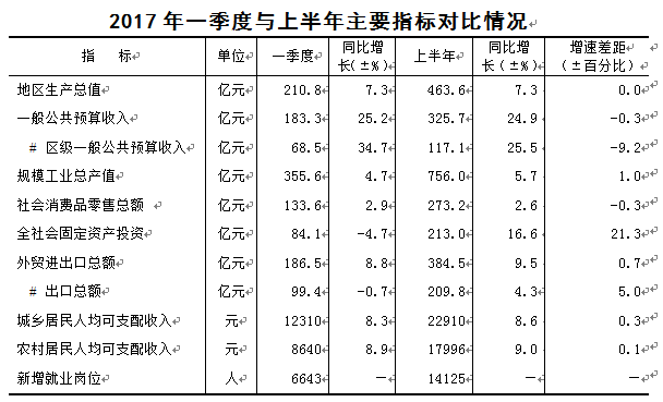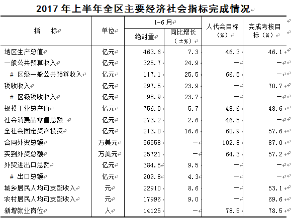 ——2017年上半年青浦区经济运行情况