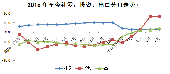 投资增速保持稳健。上半年全社会固定资产投资实现213.0亿元,增长16.6%。四大投资领域呈“三增一降”态势,房地产、商贸业、公共基础设施完成投资163.3亿元、10.2亿元和20.9亿元,分别增长19.0%、8.7%和52.1%;工业投资完成18.3亿元,下降6.2%,降幅比上月收窄13.4个百分点。